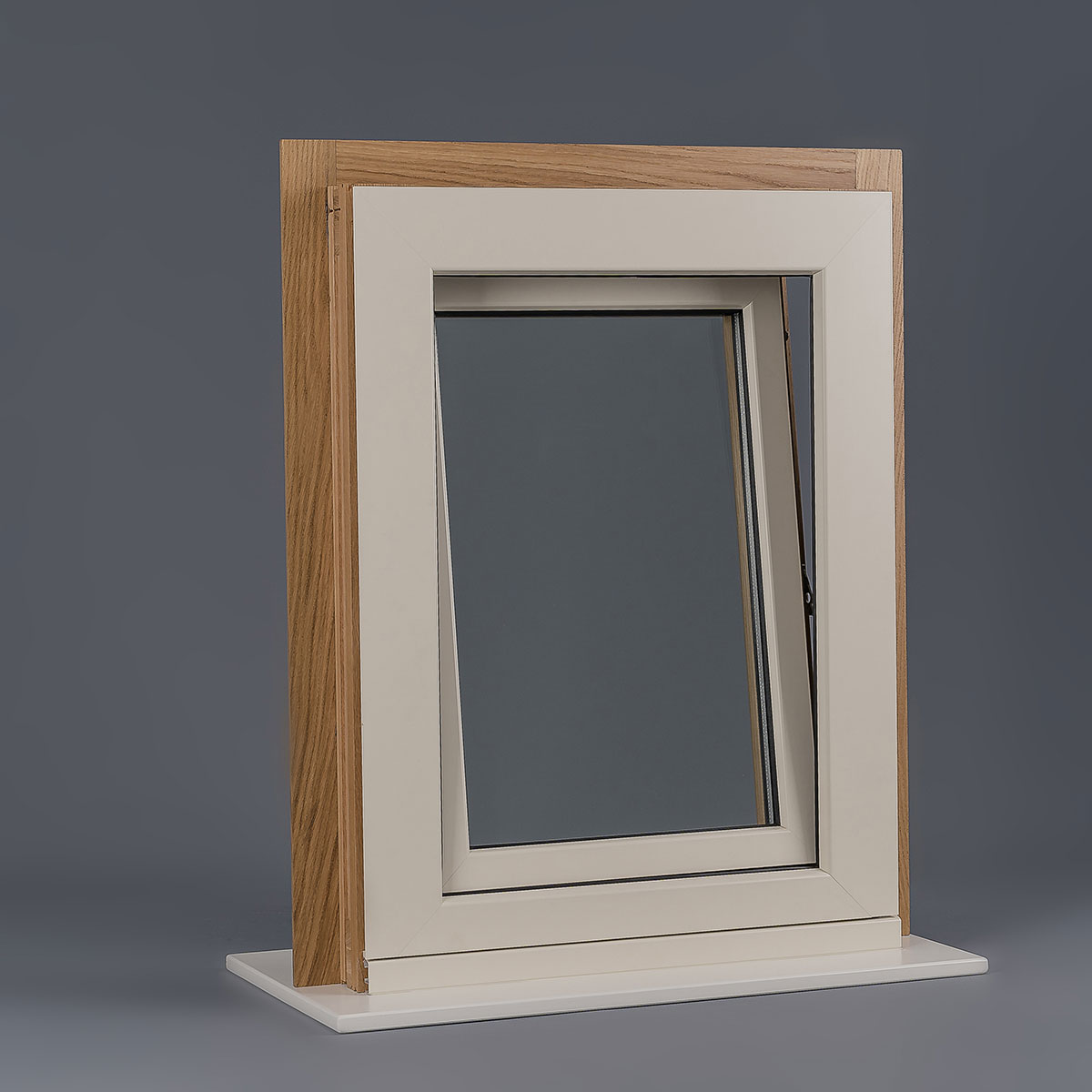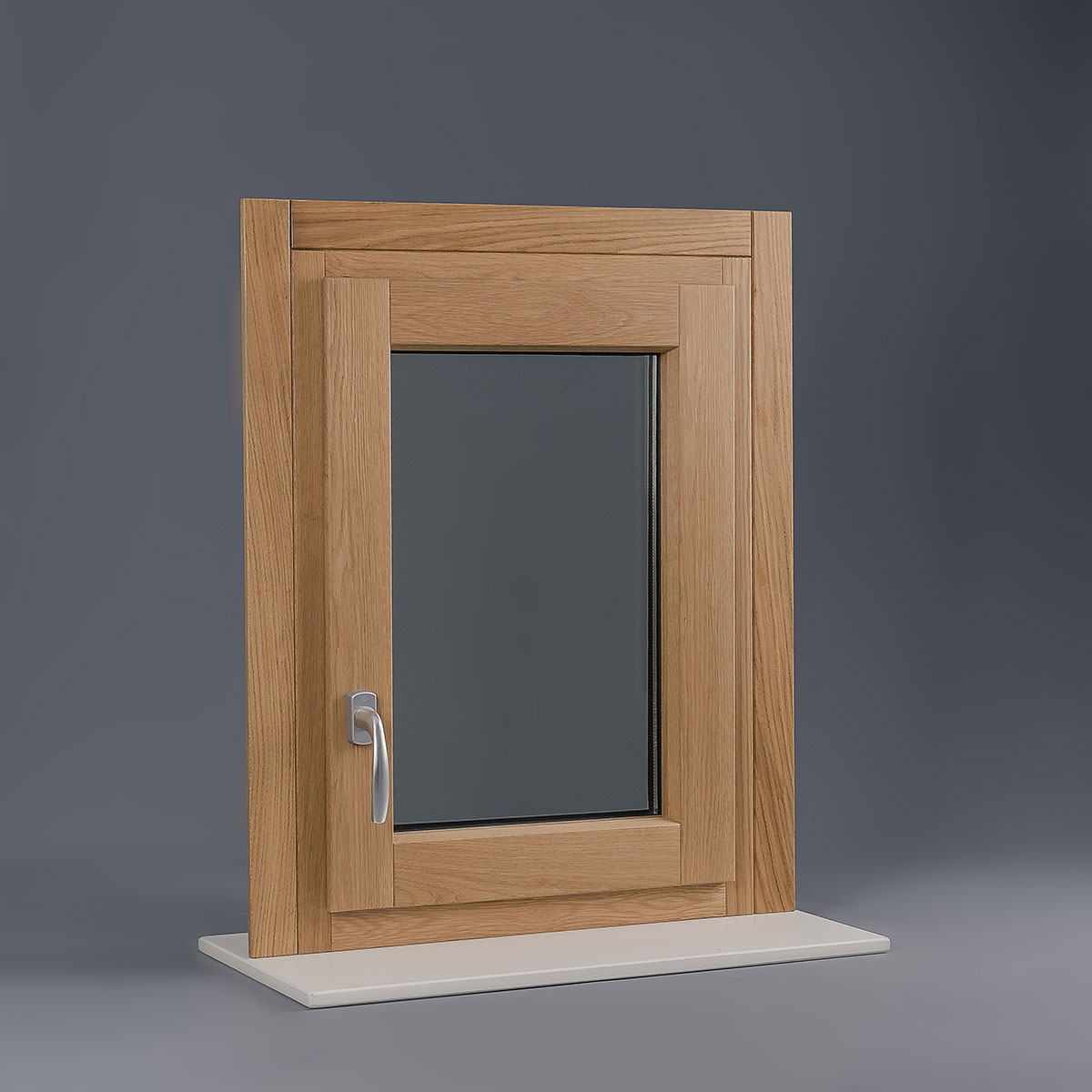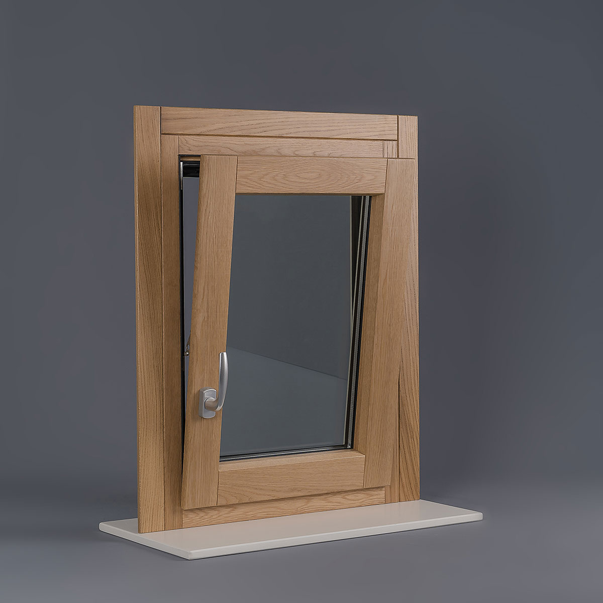 La base su cui si fonda il concetto di infisso legno/alluminio, tra calore interno e protezione esterna. Presenta due varianti che si differenziano nella cover esterna, ma si legano nel profilo interno dell’anta appena inclinato, privo di fermavetro.