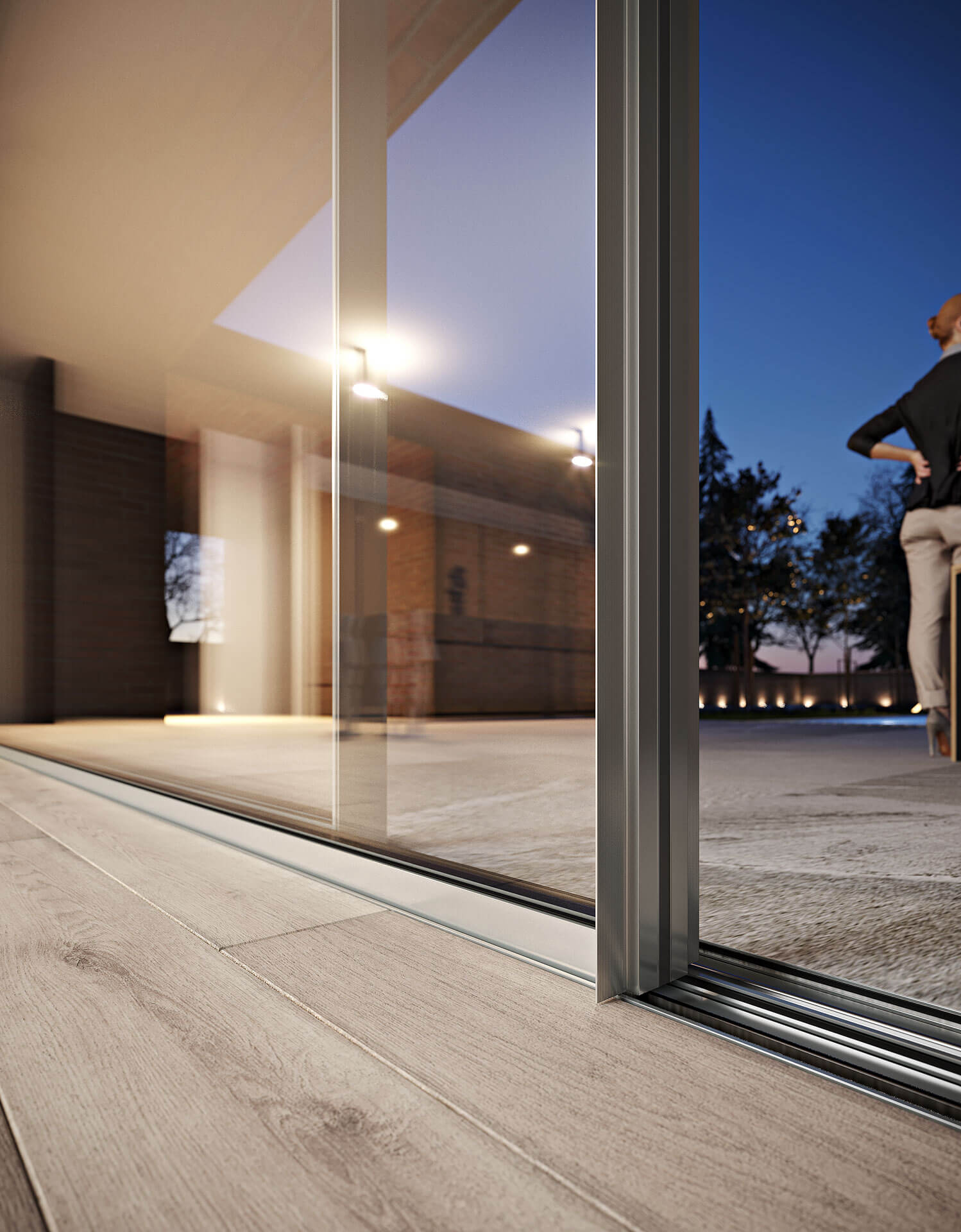 La gamma scorrevoli prevede diversi sistemi che combinano i vantaggi dell’alluminio con un design unico e un isolamento termico ad alte prestazioni. Sono la soluzione ideale per architetture di livello e ad alto impatto estetico, capaci di coprire grandi dimensioni e personalizzabili con aperture a due o più ante, con soglia ribassata in vista nella versione scorrevole alzante o soluzione incassata nella versione minimal.